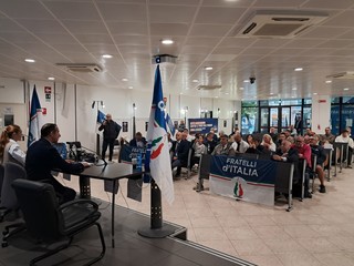 Si rivolge ai militanti, parola che ripete più volte, Matteo Debenedetti, eletto per acclamazione coordinatore cittadino di Fratelli d’Italia, in un clima già dichiaratamente da campagna elettorale per le amministrative del 2027.