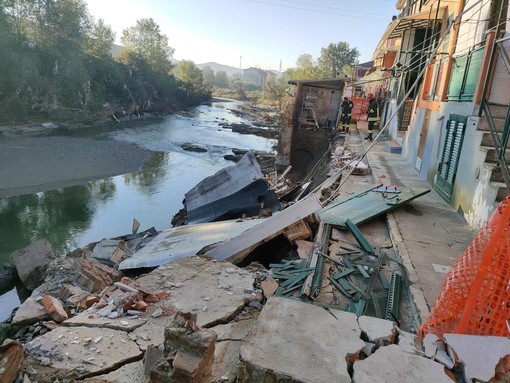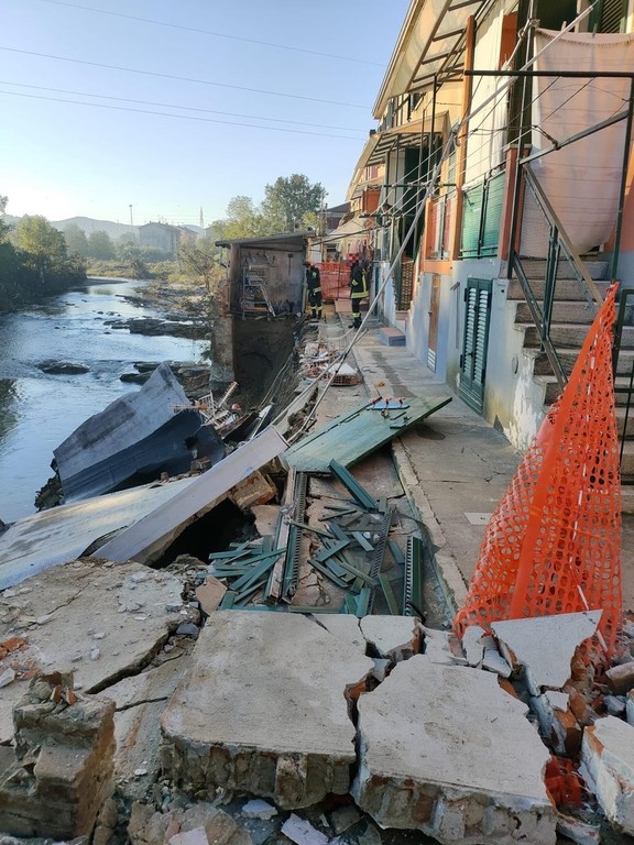 Cairo, manufatti ad uso cantine crollano nel fiume Bormida: sopralluogo dei vigili del fuoco (FOTO)