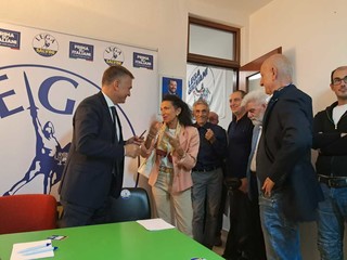 Poi la consegna delle nuove tessere a due militanti (attualmente sono circa un centinaio) e la foto di rito con il vice ministro Rixi.