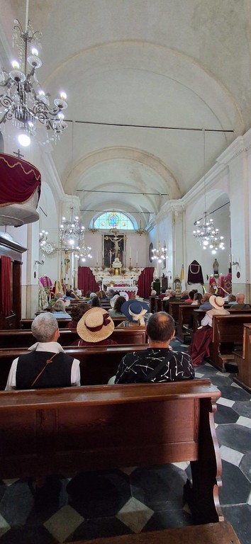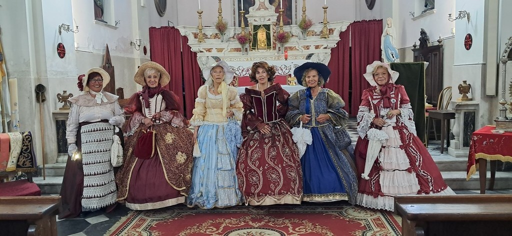Giunti presso il complesso di quella che un tempo era l’importante Abbazia di Ferrania (la chiesa è sede dell’attuale Parrocchia dei Santi Pietro e Paolo), i visitatori hanno incontrato alcune figure in abiti storici: Maria Rosa Marsilio ha impersonato la Marchesa Beatrice del Monferrato (XII sec.), apparentata alla famiglia del fondatore del complesso, Bonifacio del Vasto. Accanto a lei, in costumi dell’Ottocento, il Gruppo di Savona “Via Col Vento”, coordinato da Teresa Mula.