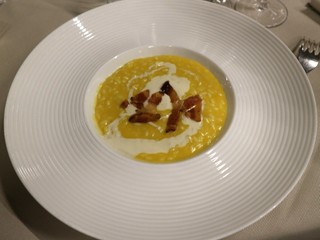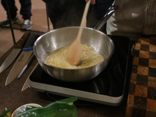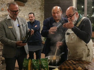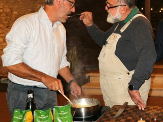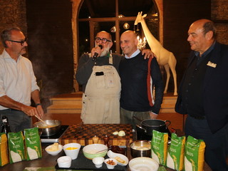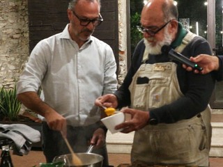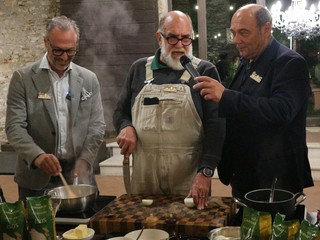 Insieme ad Andrea Bianchi, produttore del riso Carnaroli selezione Isos, ha improvvisato uno show cooking coinvolgente, preparando in sala un profumato risotto alla zucca e svelando qualche segreto della sua cucina “sincera”, fatta di gesti semplici e sapori genuini.