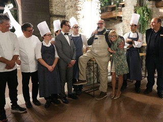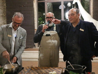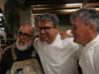La serata è poi proseguita al Ristorante Carlo Magno di Collebeato, dove Giorgione e suo figlio Beppe hanno affiancato lo chef Beppe Maffioli, padrone di casa, in una straordinaria cena a quattro mani. Il menù, pensato appositamente per l’occasione, ha intrecciato tradizione e creatività, esaltando i sapori e le eccellenze del territorio bresciano.