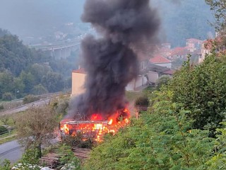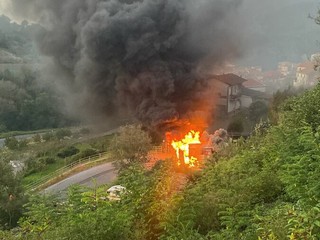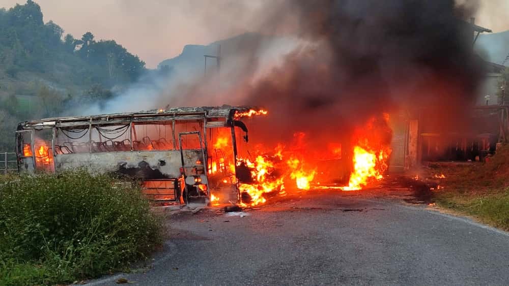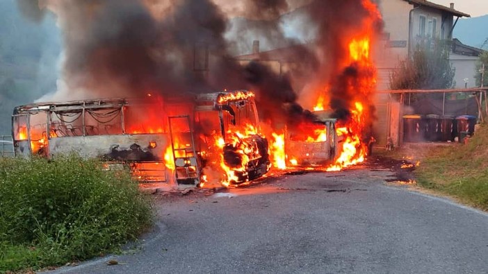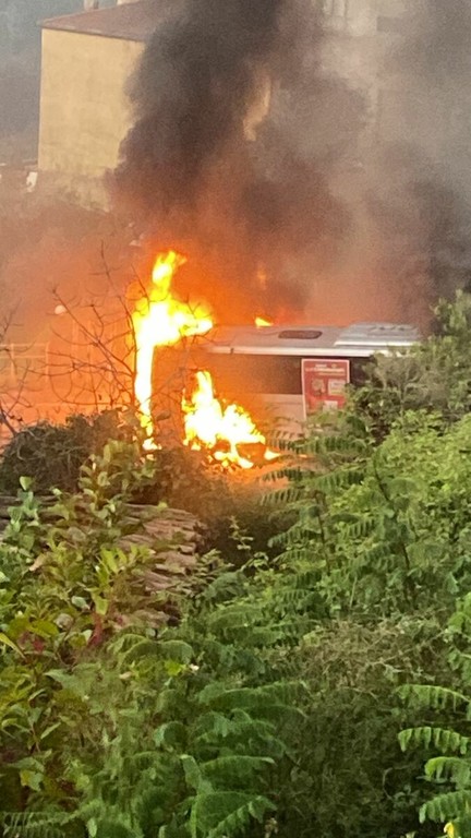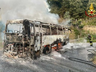 Feglino, bus della Tpl Linea in fiamme lungo la strada comunale che porta a Orco (FOTO e VIDEO)