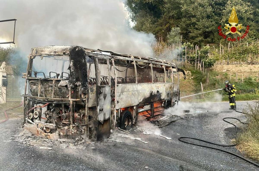 Fortunatamente nessuno è rimasto ferito: i passeggeri sono riusciti a mettersi in salvo in tempo. L’incendio ha coinvolto anche un furgone