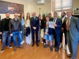 Prima di aprire i lavori del convegno il vicepresidente Piana, il capo di gabinetto Nannini, il direttore generale dell'Agricoltura, Aree protette e Natura della Regione Liguria Federico Marenco e il coordinatore regionale di Federparchi Roberto Costa hanno incontrato una delegazione di studenti dell'Istituto Marsano di Genova.