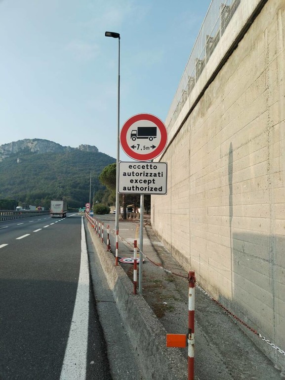 Sono stati installati nuovi impianti cartellonistici bidirezionali, più leggibili e puntuali, in sostituzione di quelli deteriorati. Oltre a cartelli ben visibili lungo l'autostrada. La nuova segnaletica ha quindi l'intento di intercettare gli autoarticolati, prevenendo manovre improprie e migliorando la sicurezza complessiva della rete viaria locale.
