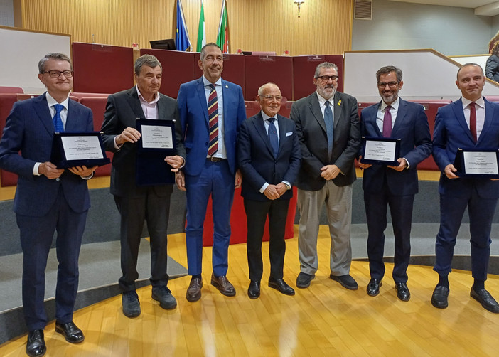 Al termine della Seduta, il presidente Stefano Balleari, insieme al vicepresidente Roberto Arboscello e al consigliere segretario Angelo Vaccarezza, ha consegnato una targa in ricordo della giornata a ciascuno dei relatori.