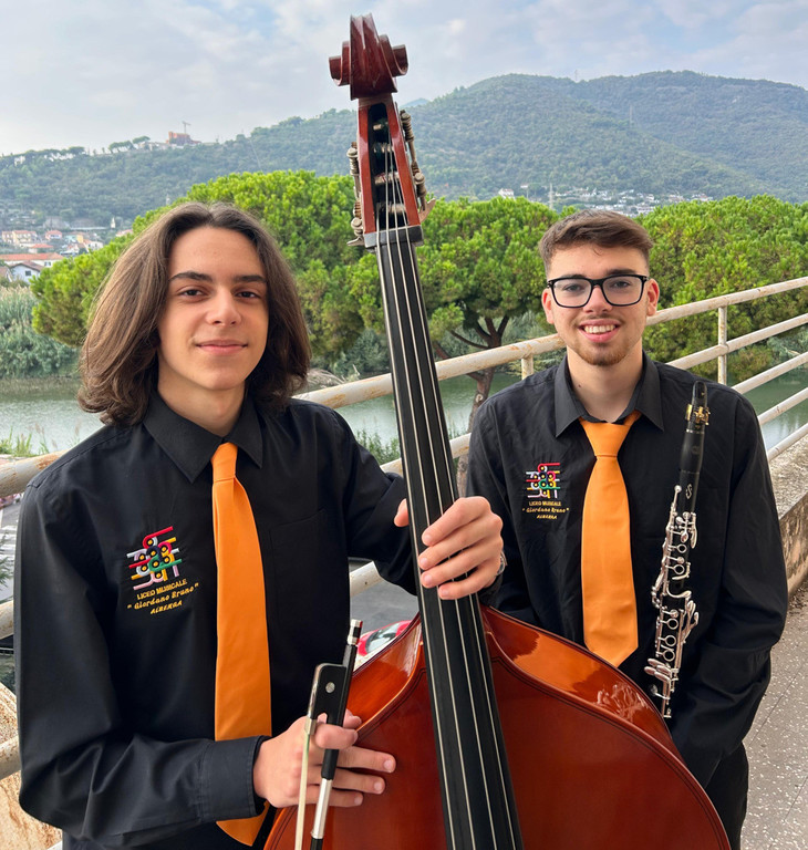 Due studenti della 4Am del Liceo Musicale "Giordano Bruno" di Albenga hanno superato le selezioni nazionali per la formazione dell’Orchestra Nazionale dei Licei Musicali, voluta dal Ministro dell’Istruzione e del Merito, Giuseppe Valditara: sono Fabiano Pinto, clarinettista, e Carmelo de Giovanni, contrabbassista.