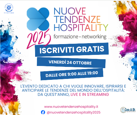 Preparatevi! Dopo il successo strepitoso dell'anno scorso, l'evento più atteso dal settore turistico italiano torna con un'energia pazzesca: "Nuove Tendenze Hospitality". Promosso da Federalberghi Provincia di Imperia e dalla Cooperativa Azzurra Dianese (Coo.A.Di.), l'appuntamento è fissato per venerdì 24 ottobre 2025 e si preannuncia un vero e proprio fenomeno nazionale!