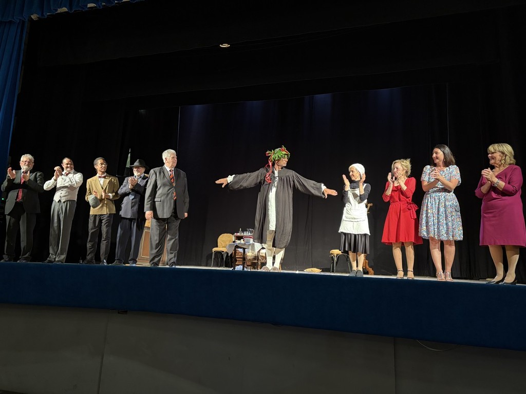 Sul palco gli attori della Compagnia Teatrale dell'Unitre di Borgio Verezzi e Pietra Ligure: Caterina Belcastro, Roberto Firpo, Emanuela Fracassi, Elisabetta Galano, Ciro Illiano, Daniele Marini, Alessandro Metelli, Erhun Raffreddato, Antonietta Rembado, Nicola Tissone.
