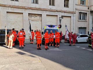 Croce Bianca, Croce d’Oro, Croce Rossa, Vigili del fuoco e polizia municipale hanno partecipato al momento di raccoglimento per ricordare i tre carabinieri scomparsi oggi, 17 ottobre, alle 16:00, orario in cui nella cattedrale di Padova si celebravano i funerali di Stato di Daprà, Bernardello e Piffari.