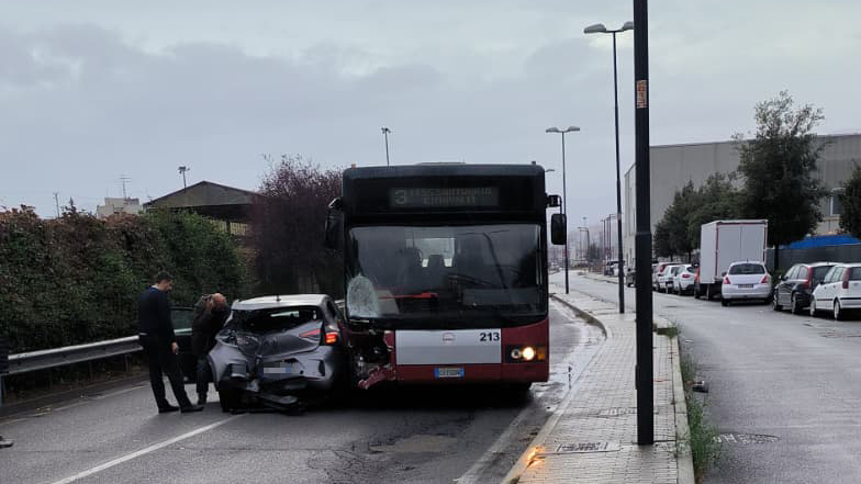 Scontro violento tra un'autobus di Tpl Linea e un'auto in via Braja dove, per cause ancora da accertare, i due mezzi sono venuti a contatto poco dopo le 14:00.