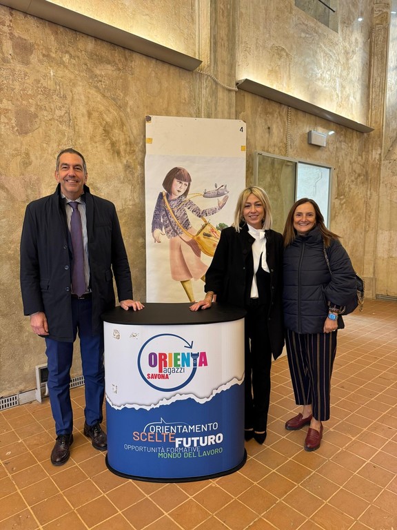 foto 1 – da sinistra, Roberto Arboscello, vicepresidente del Consiglio Regionale e consigliere regionale; Elisa Di Padova, vicesindaco e Assessore alle Politiche educative; Nadia Dalmasso, dirigente dell'Ufficio Scolastico Provinciale di Savona