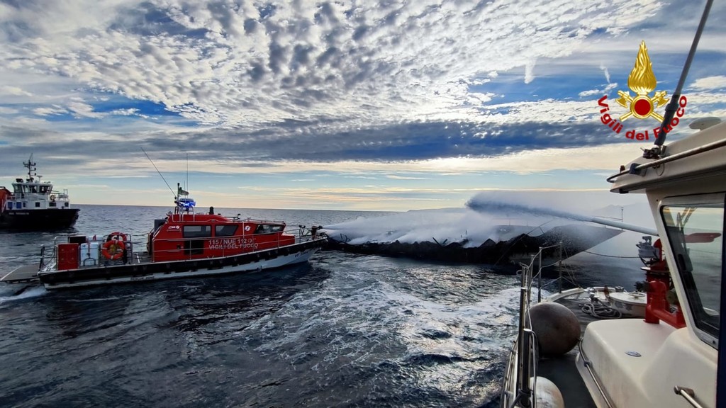 L'incendio a a bordo era stato segnalato ieri intorno alle 14.15 ed immediato era stato l'intervento dei soccorsi.