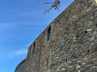 Un cantiere dove per la conformazione dei luoghi devono essere utilizzati mezzi speciali: da piccoli veicoli cingolati, che riescono a inerpicarsi sui viottoli in pietra, all’elicottero. Una presenza all’alto, fin dai primi giorni dall’avvio del cantiere, per abbreviare i tempi di collocazione dei materiali. Anche in questi giorni, un elicottero ha operato per il trasporto dei materiali per la pavimentazione dei piazzali. Dal cielo, grazie all’abilità di piloti esperti, sono arrivati al Paraxo tutti i materiali edili, i serramenti, gli impianti di riscaldamento e tecnici per le sale espositive e lo spazio polifunzionale realizzato nelle ex scuderie del Paraxo.