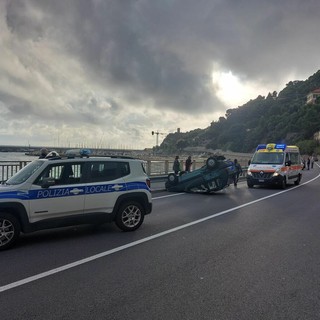 Auto sbanda e si cappotta nel rettilineo sull'Aurelia: grande spavento tra Finale e Varigotti