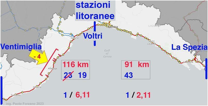 Il Comitato Territoriale torna a esprimersi sul progetto di spostamento a monte della ferrovia, ribadendo la propria opposizione: "Nel Levante ligure le stazioni e le fermate ferroviarie sono 43, distribuite in una tratta di 91 km: in pratica una ogni 2,11 km. In generale, presentano un numero di passaggi a livello ridotto o tendente a zero, soprattutto nelle tratte più recenti o riqualificate, dove sono stati sostituiti da sottopassi o cavalcavia. Nel Ponente ligure, invece, le stazioni e le fermate ferroviarie sono attualmente 23 su una tratta di 116 km, ma verranno ridotte a 19: praticamente una ogni 6,11 km".