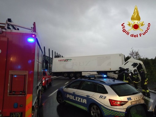 Il conducente è riuscito a scendere autonomamente ed illeso dal mezzo, nonostante la cabina fosse rimasta in bilico. I vigili del fuoco hanno messo in sicurezza l'area ed il veicolo, e collaboreranno con l'ente autostrade per la rimozione del autoarticolato.