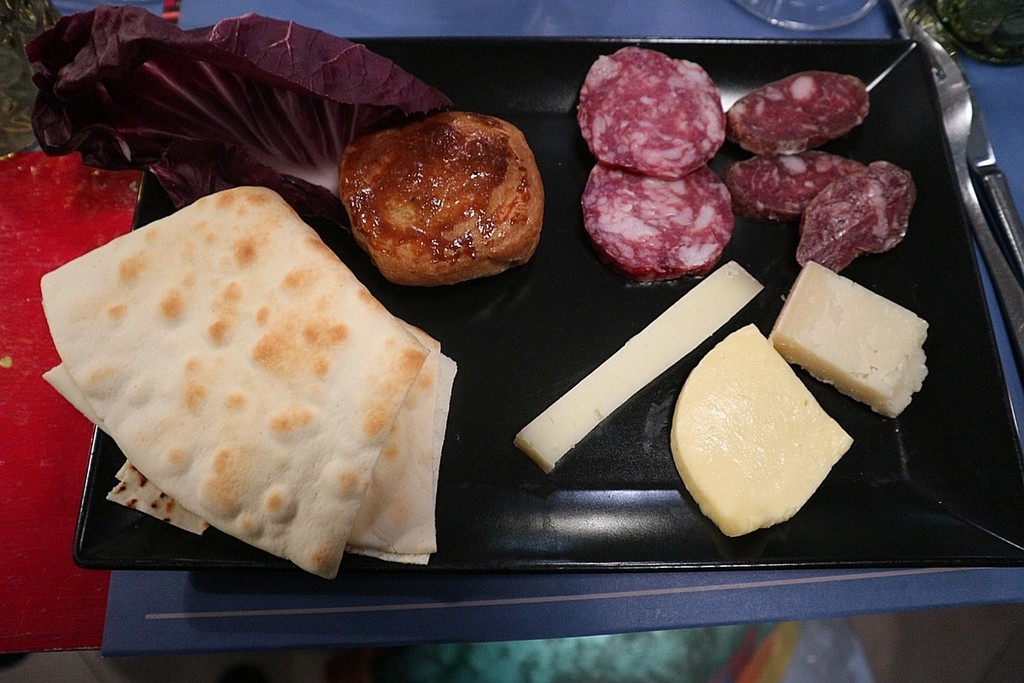 La cena si è aperta con le Impanadas, piccoli scrigni di pasta un tempo preparati nei giorni di festa. Al loro interno custodiscono una gustosa farcia di salsiccia, abbinata a salumi e formaggi sardi: un antipasto fragrante e ricco, profondamente legato alla terra e alla cultura pastorale dell’isola. Testimoni di una cucina che sa essere povera e generosa, semplice e sapientissima allo stesso tempo.