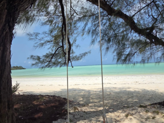 Il viaggio continua verso Shamiani Island, conosciuta anche come Kiweni Island. Si raggiunge combinando pulmino e barca, seguendo i ritmi delle maree, e regala la sensazione di arrivare nel giardino dell’Eden. In questo luogo il vuoto è il protagonista. Le spiagge sono deserte, le acque limpide e calme, la foresta scende fino al mare. Sulla riva, un’altalena appesa a un albero oscilla dolcemente di fronte all’oceano. È un simbolo perfetto dell’isola: semplice, autentica, capace di restituire spazio senza aggiungere nulla di superfluo. Qui si trova anche Emerald Beach, una distesa di sabbia chiarissima che scintilla al sole e prende il nome dai riflessi verdi e turchesi del suo mare. È pura scenografia naturale, un tratto di costa che ipnotizza. Qui è stata costruita una struttura ricettiva pensata per inserirsi nell’ambiente circostante, senza intaccarne l’equilibrio. Non è un resort, ma un rifugio eco-sostenibile che dialoga con la natura anziché dominarla.