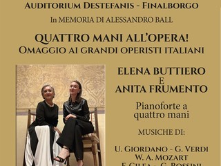 Sabato 29 novembre alle 16.30 all’Auditorium Destefanis di Finalborgo, ospite il duo pianistico composto da Elena Buttiero e Anita Frumento con uno spettacolo dal titolo “Quattro mani all’opera: omaggio ai grandi operisti italiani”.