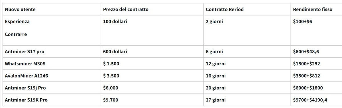 - Acquista un Cloud Mining Contratto: 8HOURSMining offre una varietà di contratti ad alte prestazioni e ad alto rendimento, ciascuno con hashrate e termini diversi, con conseguenti rendimenti variabili.
