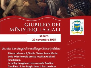 Sabato 29 novembre si terrà il Giubileo diocesano dei Ministeri laicali. Alle ore 9 ci sarà il ritrovo presso la Chiesa Santa Maria della Misericordia, in località Aquila di Finalborgo. A seguire ci si sposterà in pellegrinaggio fino alla Basilica San Biagio, una delle chiese giubilari della diocesi di Savona-Noli, sempre a Finalborgo. Qui il parroco don Lorenzo Cortese terrà una catechesi, sarà possibile confessarsi e si concluderà con una preghiera.
