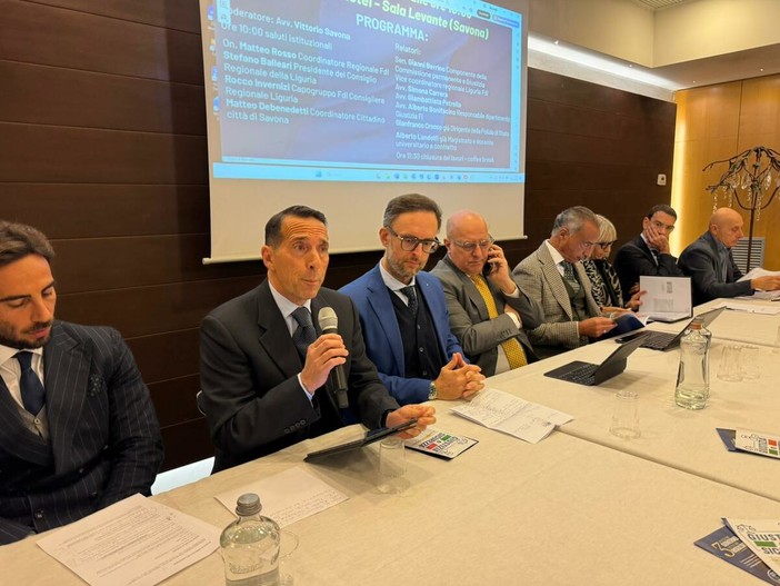 Si è svolta questa mattina, nella Sala Levante del Mare Hotel di Savona, la prima tavola rotonda a livello nazionale promossa dal Coordinamento Regionale di Fratelli d’Italia Liguria, in collaborazione con il Coordinamento Cittadino di Savona, dedicata alla riforma della giustizia proposta dal Governo Meloni. Si tratta di uno degli eventi a livello nazionale sull’argomento, ed è stato deciso di organizzarlo a Savona in quanto capoluogo di provincia e sede del Tribunale.
