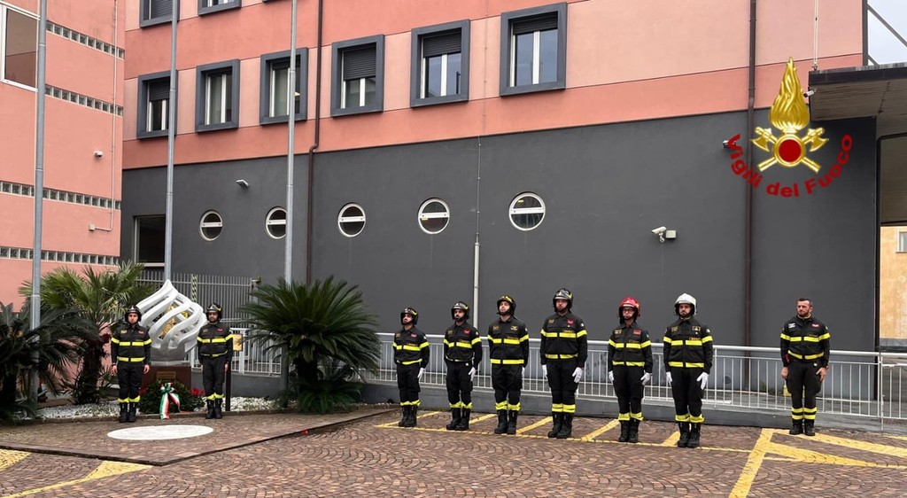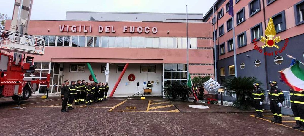 La mattinata è proseguita con la deposizione della corona di alloro al monumento ai Caduti della caserma di via Nizza, alla presenza del Prefetto. Un gesto carico di significato, che ogni anno rinnova la memoria di chi ha perso la vita nel servizio alla collettività e ricorda la responsabilità morale che accomuna ogni vigile del fuoco.