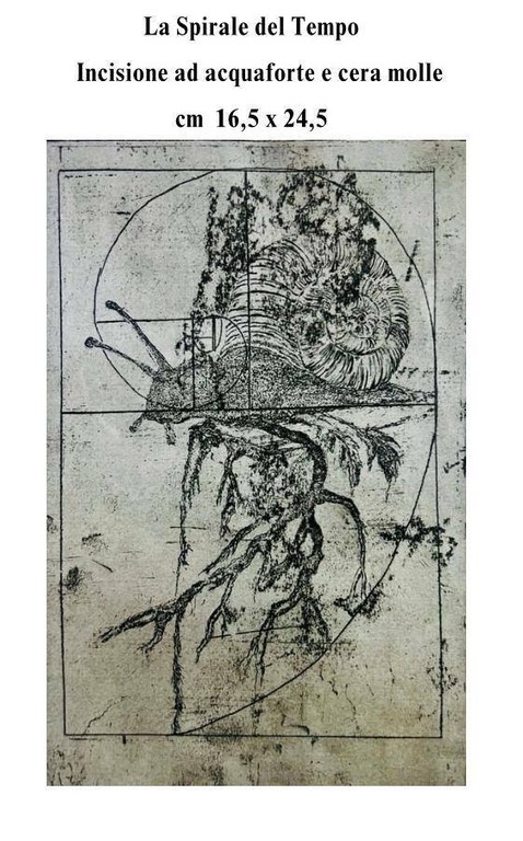 “La Spirale del Tempo” è realizzata con la tecnica dell’incisione ad acquaforte e cera molle di 16,5 x 24,5 cm.