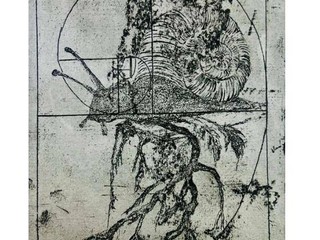 L’opera rappresenta "una chiocciola in cammino, il cui guscio si sviluppa armoniosamente lungo la spirale della sezione aurea. L'immagine unisce rigore geometrico e sensibilità organica, evocando una riflessione sul rapporto tra tempo, crescita e natura. La chiocciola avanza lenta, ma decisa: simbolo universale di pazienza, resilienza e ritmo interiore, ricorrente in molte culture come archetipo della vita ciclica e del ritorno alla terra. Il suo percorso spiraliforme non è casuale: è iscritto nella spirale aurea, forma geometrica che visualizza la successione di Fibonacci. Questa spirale, definita ‘logaritmica’, è una costante nei sistemi viventi: dalle conchiglie dei molluschi ai capolini dei girasoli, dai rami degli alberi alla disposizione dei semi. Tali strutture non sono casuali: rappresentano un'ottimizzazione evolutiva, una strategia naturale per distribuire massa, luce e nutrimento nel modo più efficiente. Ma la spirale non è solo un elemento matematico: è metafora dell'evoluzione. Come l'essere umano, la chiocciola si muove in un ciclo continuo, tra ritorni e slanci, trasformazioni e permanenze. In un'epoca dominata dalla velocità e dalla disconnessione dai ritmi naturali, la chiocciola diventa simbolo di equilibrio: un invito a riconoscere la bellezza della lentezza, della coerenza interiore e del dialogo armonico con l'universo".