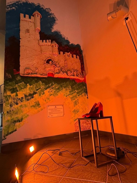 Le due scarpe rosse, nell’atrio, poste su un supporto e illuminate di arancione sono state un’immagine forte che richiamava il vuoto lasciato dalle vittime e la necessità di non abbassare mai l’attenzione.