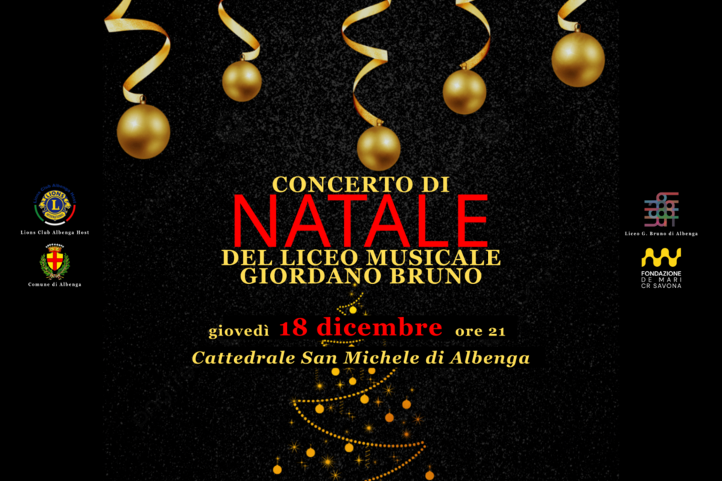 Il Liceo Musicale "Giordano Bruno" presenta il tradizionale Concerto di Natale, in programma giovedì 18 dicembre 2025 alle ore 21:00 presso la Cattedrale di San Michele Arcangelo di Albenga.
