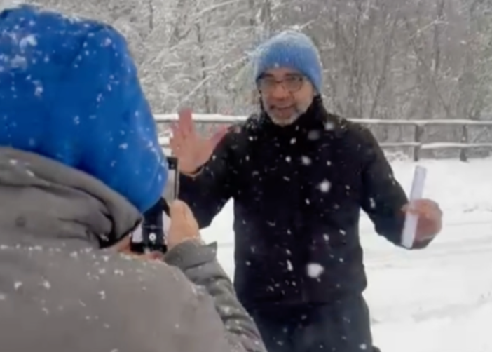 Con la prima neve a tingere di bianco i tetti di Roccavignale, il paese ha accolto un ospite speciale: il “Meteorologo Ignorante”. Tra fiocchi leggeri e un vento gelido che tagliava l’aria, si è arrampicato fino alle alture del paese per controllare le due nuove stazioni meteorologiche, incuriosendo i residenti lungo il percorso.