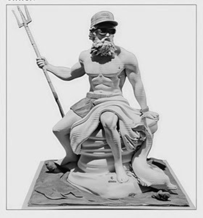 Ad affidarlo il Comune che aveva inviato una richiesta all'artista Teo Martino per realizzare un'opera scultorea in marmo bianco. E' stata prevista così una statua di un Poseidone "surfista" in infradito con gli occhiali e con il berretto e verrà posizionata a lato della piazza. L'opera denominata "Nettuno mi può giudicare" sarà di più di due metri di altezza per un totale con il basamento di 3 metri e mezzo e verrà realizzata in tre pezzi. La spesa complessiva dovrebbe attestarsi sui 326mila euro. E non erano mancate le critiche della minoranza e di un gruppo di cittadini che avevano firmato una petizione per rivedere il progetto di restyling in generale.
