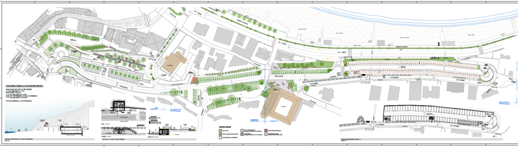 Il progetto selezionato non si limita al completamento dell’autorimessa, ma propone “una riprogettazione organica dell’intero comparto ex ferroviario di Via IV Novembre, compreso tra la galleria lato centro storico e il confine con l’area monumentale di San Paragorio”, puntando a superare l’attuale frammentazione e il degrado, trasformando l’area in uno “spazio urbano continuo, accessibile e qualificato dal punto di vista paesaggistico”.