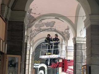Questa mattina è stato lanciato l'allarme per la caduta di intonaco sotto i portici e sul posto sono intervenuti i vigili del fuoco che hanno transennato l'area.