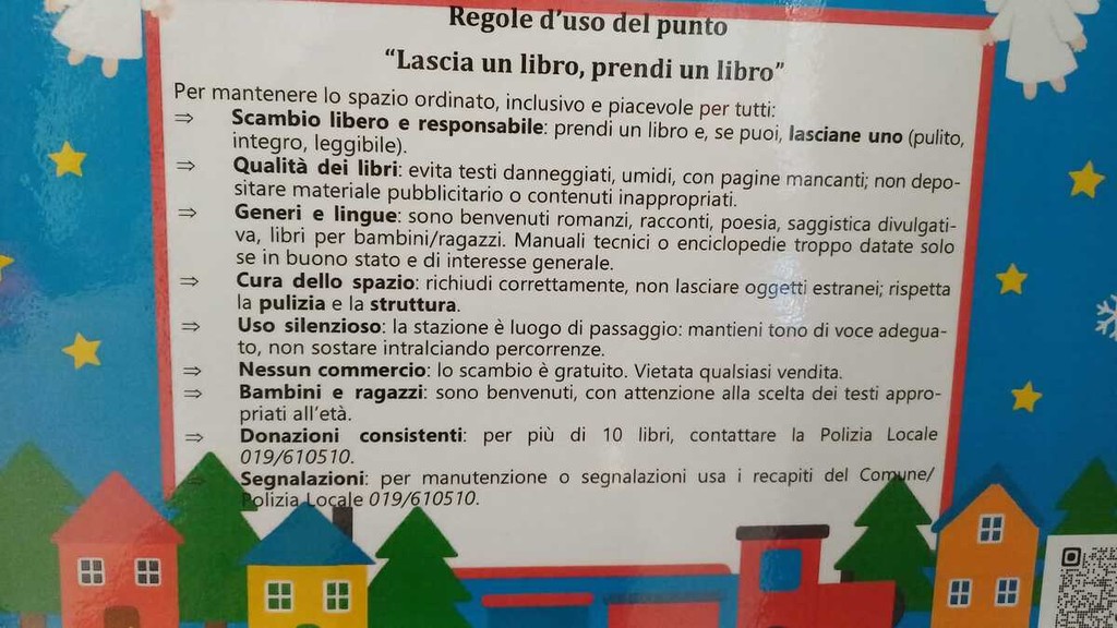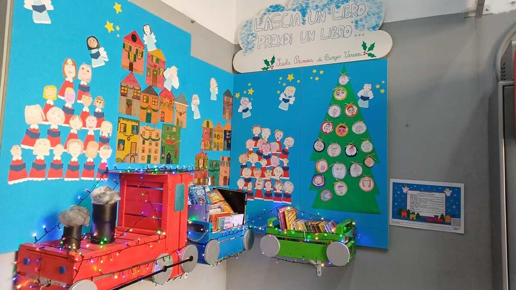 Un ringraziamento alla Dirigente Scolastica Dott.ssa Manno e a tutti gli insegnanti che hanno permesso il coinvolgimento degli alunni della Scuola Primaria di Borgio Verezzi, che hanno arricchito l’area con un fondale natalizio, trasformando l’area in un piccolo palcoscenico di colori, parole e comunità, mentre gli alunni della Secondaria stanno già lavorando ad un nuovo allestimento.