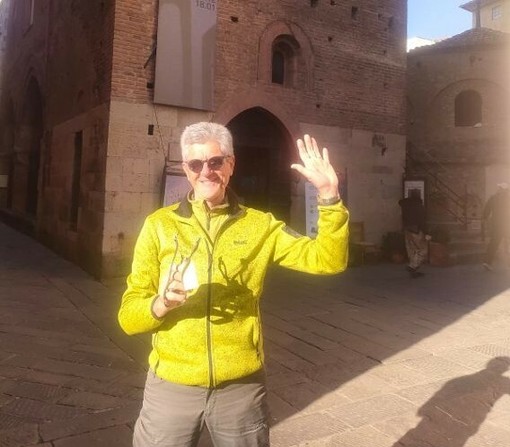 Protagonista è Pino, padovano classe 1958, che durante una vacanza ad Andora ha deciso di raggiungere Albenga in bicicletta per consegnare personalmente una piccola fionda in metallo, parzialmente rivestita in pelle. Un gesto semplice ma carico di significato, che ha colpito i visitatori e i volontari del museo.