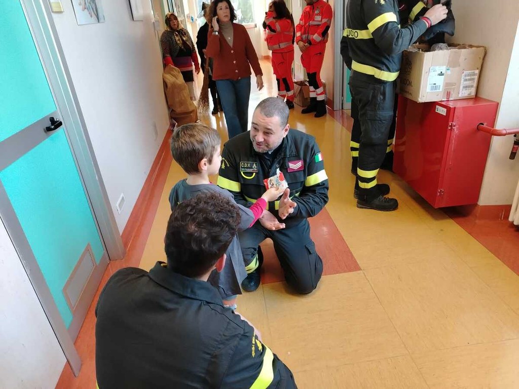 Particolarmente emozionante è stato il regalo di un bambino ricoverato, un pacchetto di cioccolato, ad un vigile del fuoco.