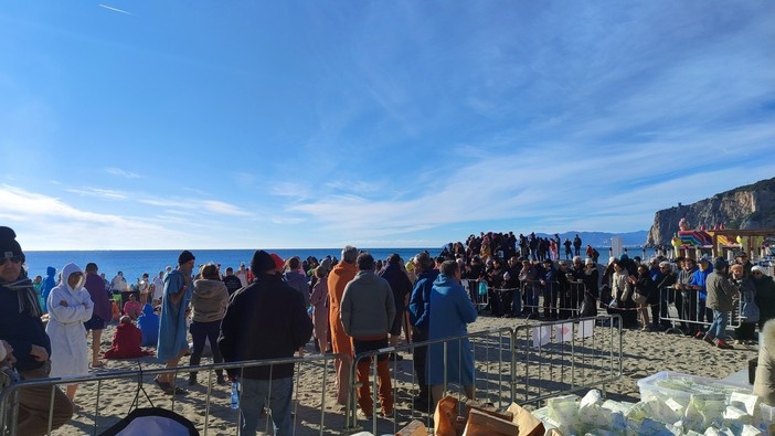 Stamattina (6 gennaio, ndr) sulla Spiaggia dei Neri, sono stati 130 i temerari che hanno sfidato un’aria a 5°C e acque decisamente più calde a 12°C per la tradizionale prima "ciumba" dell’anno. L'evento, organizzato dalla Compagnia di San Pietro col supporto dei commercianti e il patrocinio comunale, ha goduto di una tregua dal vento proprio al momento del tuffo, regalando una cornice ideale alla nutrita schiera di partecipanti e curiosi.