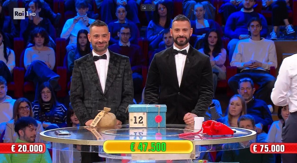 Nel noto game show condotto da Stefano De Martino su Rai Uno, i gemelli Marco e Maurizio negli ultimi 4 pacchi erano rimasti con 15mila euro, 20mila, 75mila e 200mila euro e dopo aver rifiutato un'offerta da 40mila euro ed un cambio pacco hanno accettato l'offerta finale del "Dottore". Nel loro pacco avevano 75mila euro.