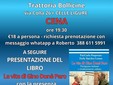 L’evento avrà luogo alla Trattoria Bollicine, in via Colla 26. La cena inizierà alle 19.30, con un costo di 18 euro a persona; è richiesta la prenotazione via whatsapp a Roberto (388.611.59.91). A seguire, il coautore Piercarlo Porporato presenterà il libro, raccontando la vita di Gino Donè Paro, combattente antifascista italiano e partecipante alla Rivoluzione cubana.