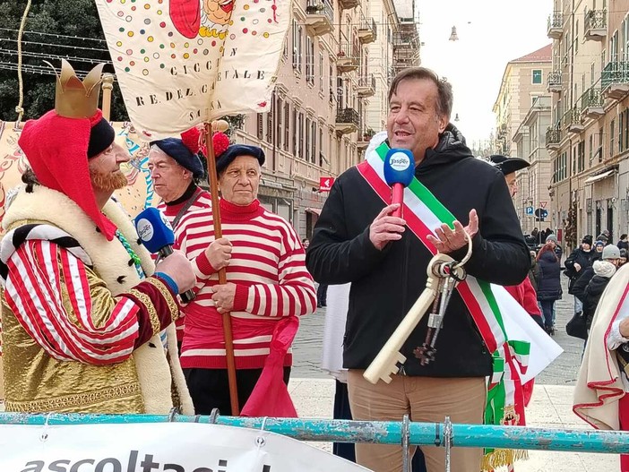 Cicciolin ha ricevuto le chiavi della città dal sindaco di Savona Marco Russo e il carnevale può iniziare.