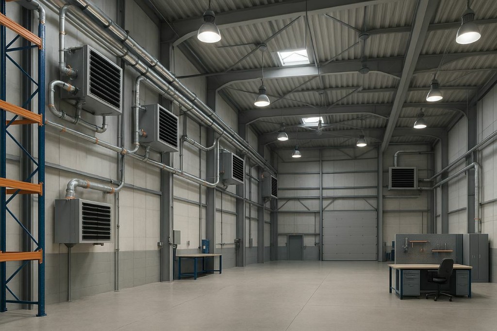 La disposizione in pianta e in altezza degli aerotermi deve essere studiata per garantire un adeguato rimescolamento dell’aria. In ambienti particolarmente alti (oltre 8–10 metri) può essere opportuno valutare l’uso combinato di aerotermi e destratificatori. Una progettazione attenta tiene conto dei moti convettivi naturali, delle eventuali barriere (soppalchi, scaffalature alte) e delle correnti d’aria indotte da porte o portoni.