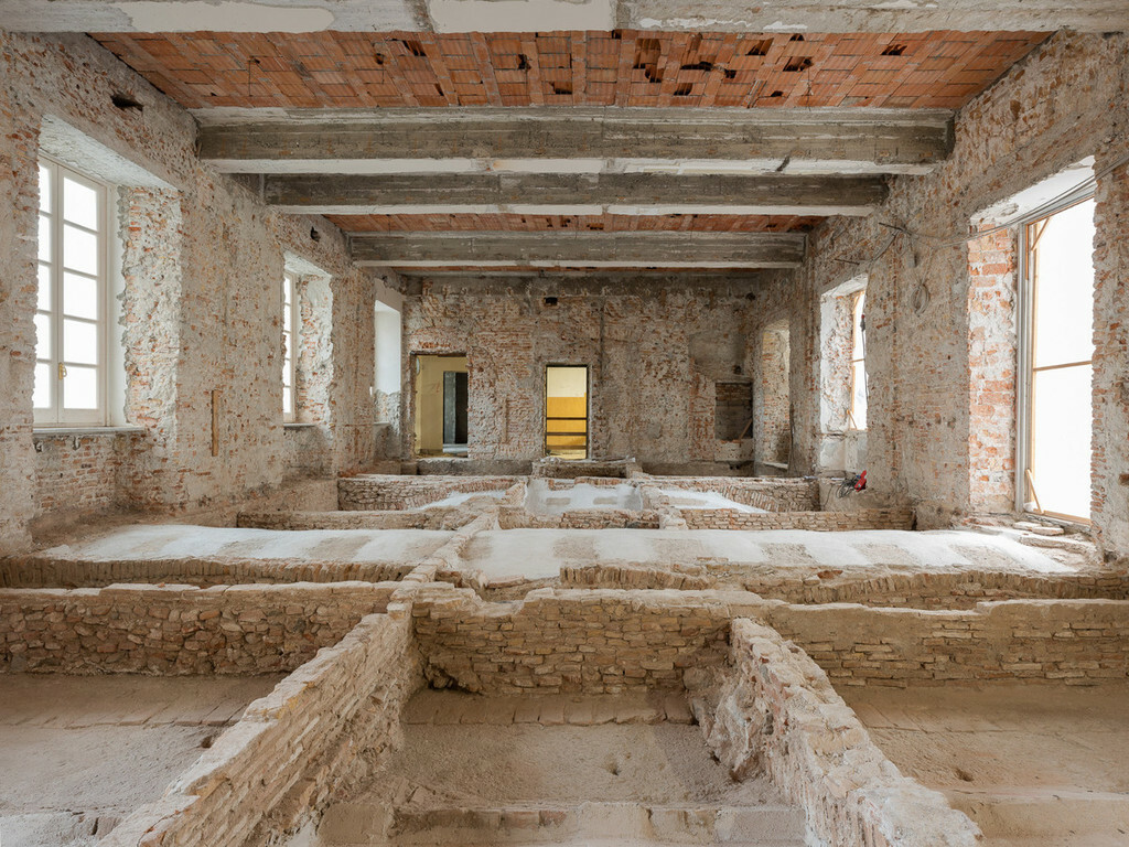Parallelamente, in considerazione dei ritrovamenti effettuati nei piani seminterrati, che necessitano di ulteriori e specifici approfondimenti archeologici, si è ritenuto, in questa fase, di stralciare la realizzazione delle opere in questi locali, in particolare, negli ambienti che si affacciano su Vico del Marmo e in due ambienti che si affacciano su piazza Vacciuoli. Soluzione questa che, comunque, non inficia la funzionalità del Polo culturale.