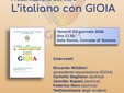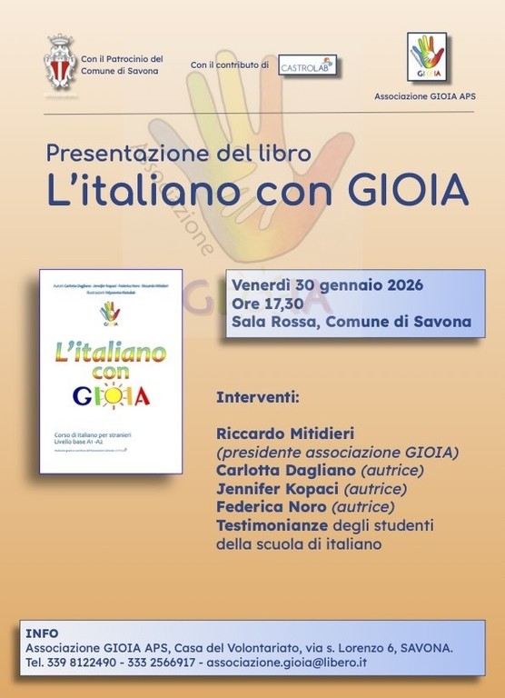 Da questa riflessione è nato il "Progetto Mamme" per studiare insieme l'italiano. Con il passare del tempo il progetto non solo si è trasformato in un’attività integrante dell’associazione ma ha anche voluto essere aperto a tutti ed è diventato una piccola scuola ribattezzata "L'italiano con Gioia". Si è manifestata presto l’esigenza che il progetto potesse contare anche su un testo dedicato, sulla base delle lezioni nate giorno dopo giorno. "L'italiano con Gioia" è anche il titolo scelto per questo testo didattico, che sarà presentato venerdì 30 gennaio alle ore 17:30 nella Sala Rossa del Municipio.