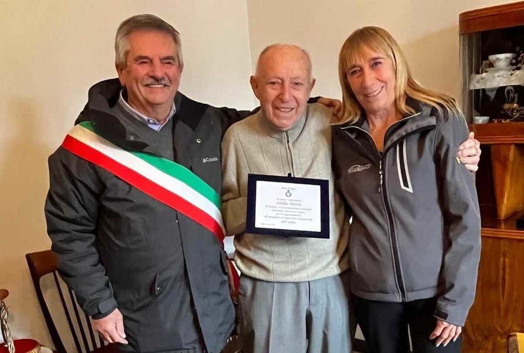 Per l’occasione ha ricevuto la visita del sindaco Francesco Dotta e della vice sindaco Lorenza Rinaldi, che hanno voluto omaggiarlo di questo momento speciale.