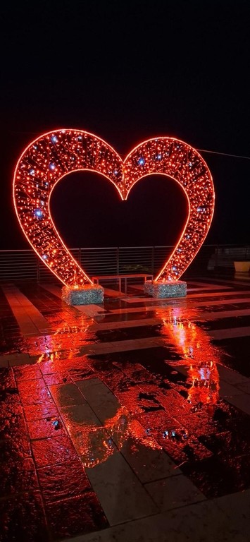 L’installazione resterà fino al 22 febbraio, offrendo a residenti e visitatori uno scenario particolarmente evocativo, soprattutto nelle ore serali, quando il cuore si illumina diventando un punto di richiamo visivo e simbolico.