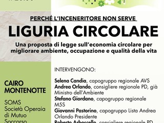 Fa tappa in Val Bormida il tour del centrosinistra ligure per presentare la proposta di legge sull’economia circolare, mirata a ridurre rifiuti e inquinamento, con un occhio di riguardo alla creazione di nuovi posti di lavoro. Martedì sera, alle 20,30, i capigruppo di opposizione in Regione si ritroveranno a Cairo Montenotte per presentare l’iniziativa ai cittadini. L’incontro “Liguria Circolare: perché l’inceneritore non serve” si svolgerà nella Società Operaia di Mutuo Soccorso “G. C. Abba” in via Fratelli Francia e sarà presentato dalla giornalista Elena Romanato.